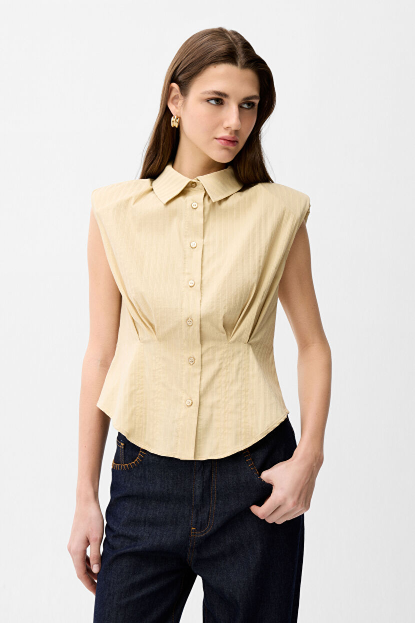 Yeşil Pile Detaylı Kolsuz Gömlek