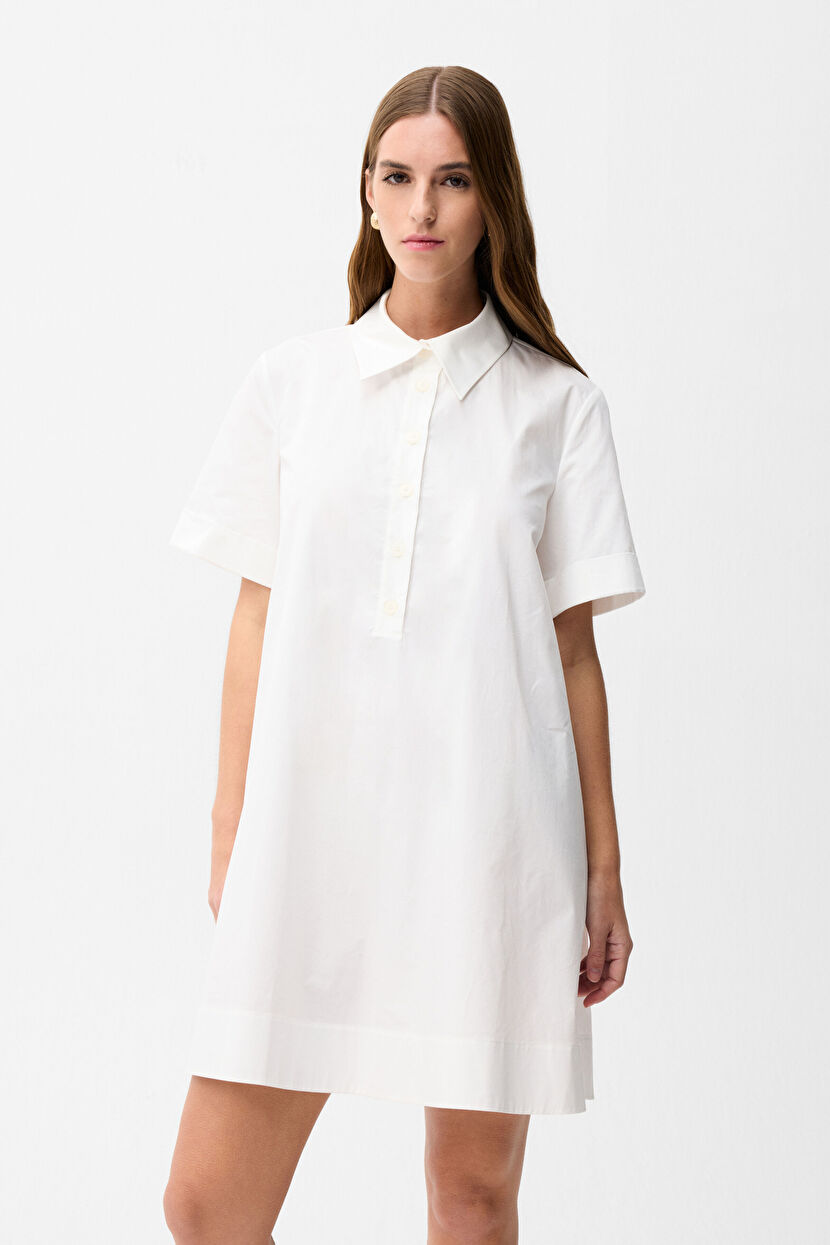 Beyaz Mini Gömlek Elbise