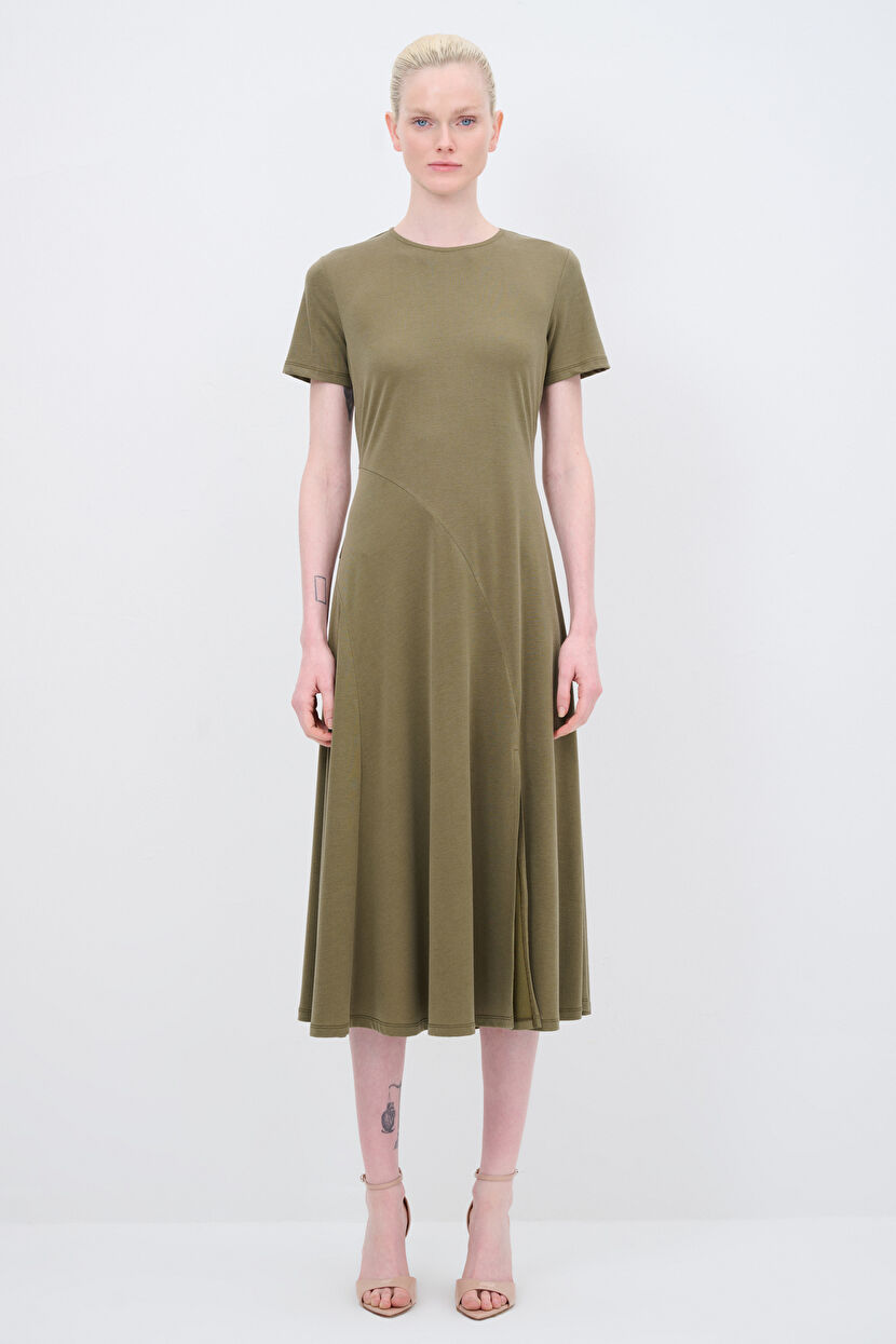 Haki Yırtmaç Detaylı Örme Elbise