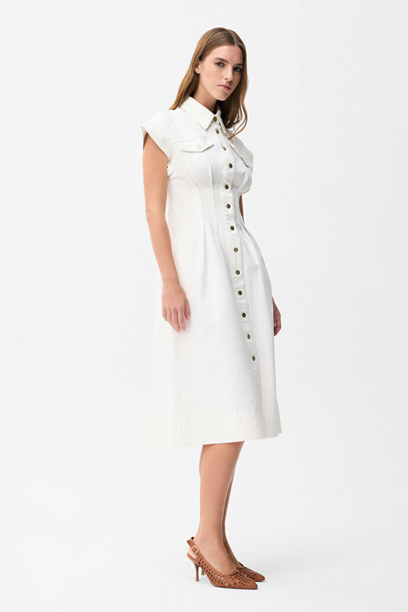 Kemik Dikiş Detaylı Denim Elbise