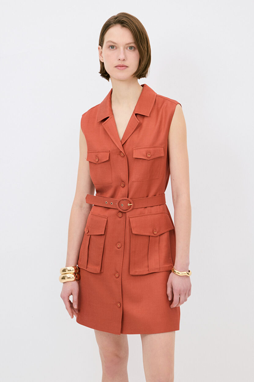 Turuncu Körüklü Cepli Elbise