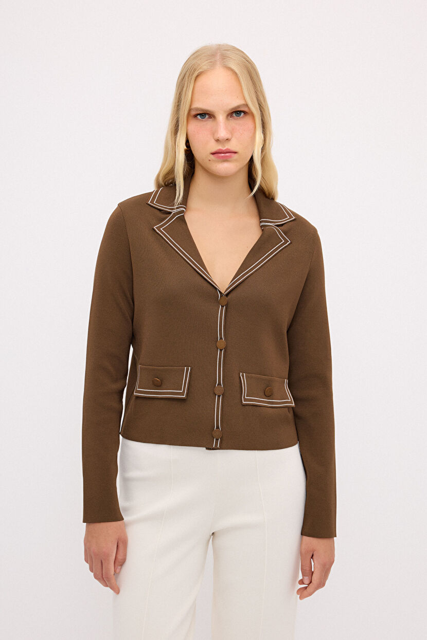 Yeşil Çizgili Ceket Yaka Triko Hırka