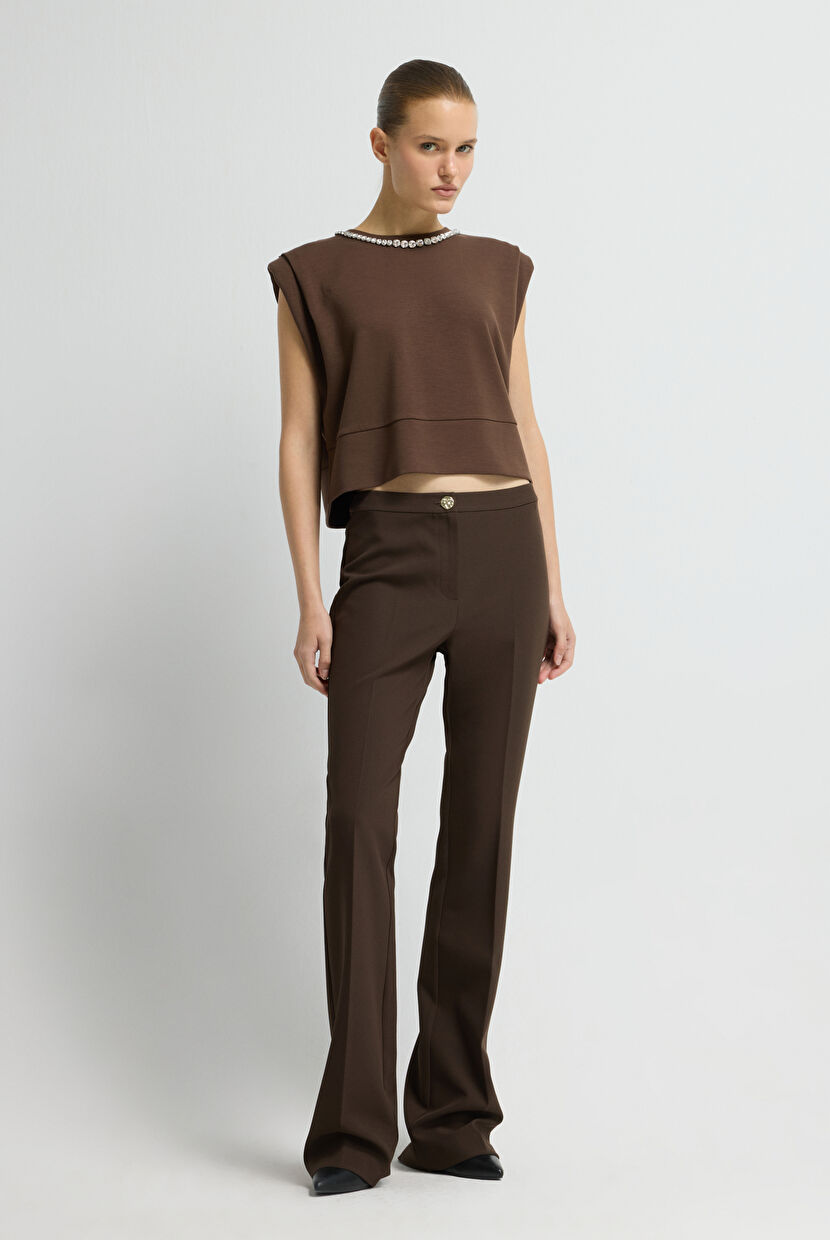 Kahverengi İspanyol Paça Gabardin Pantolon