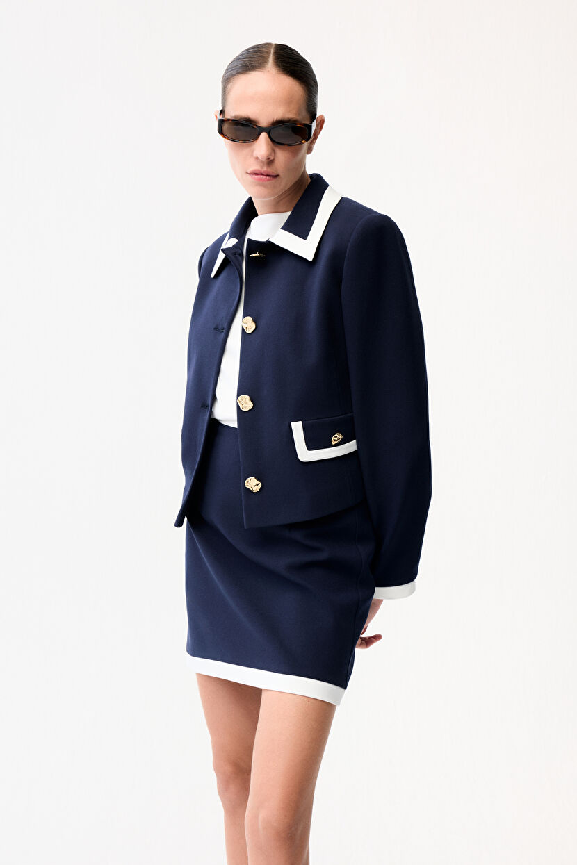 Vanilya Balıksırtı Desenli Kısa Ceket