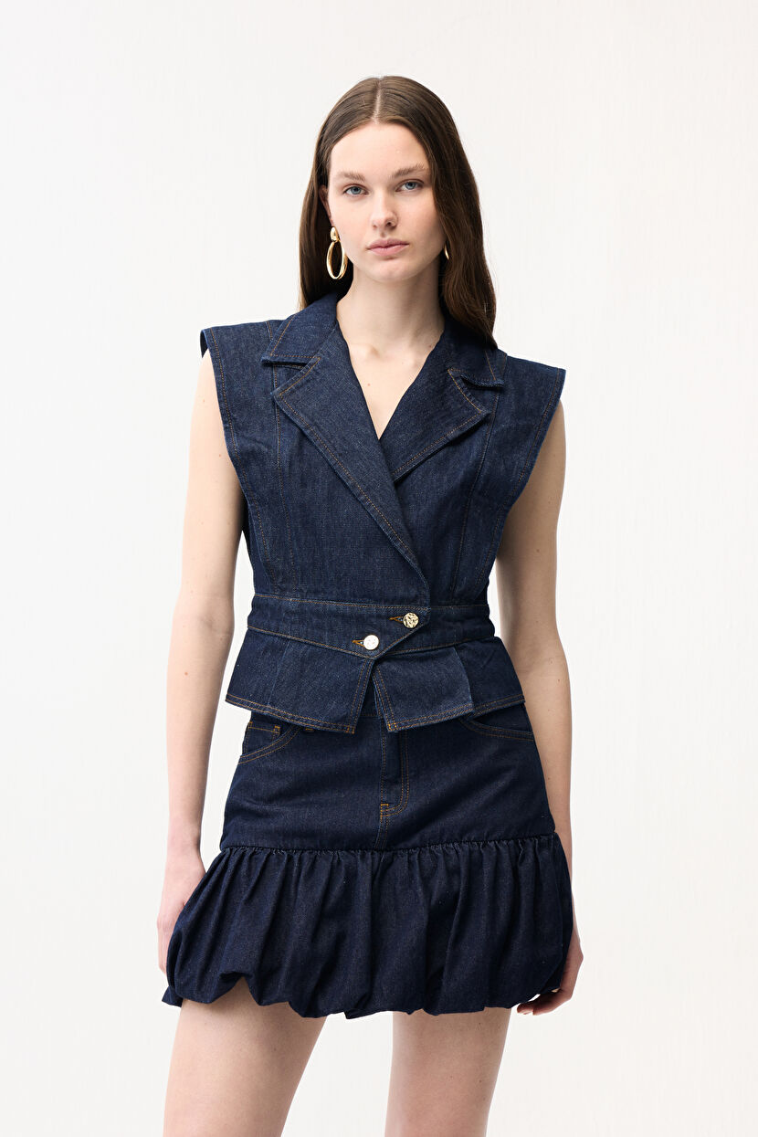 Lacivert Denim Yelek