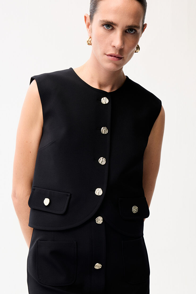 Siyah Cep Kapaklı Yelek