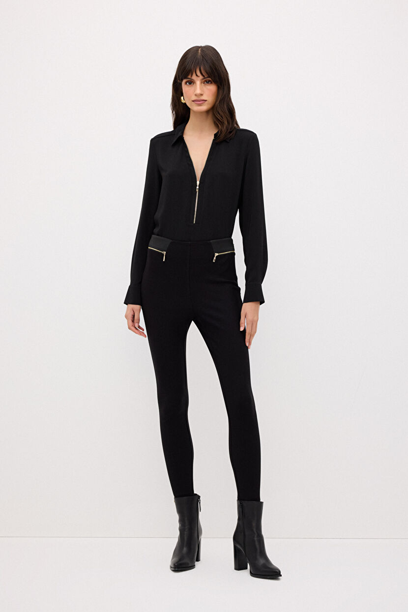 Siyah Lastik Detaylı Tayt