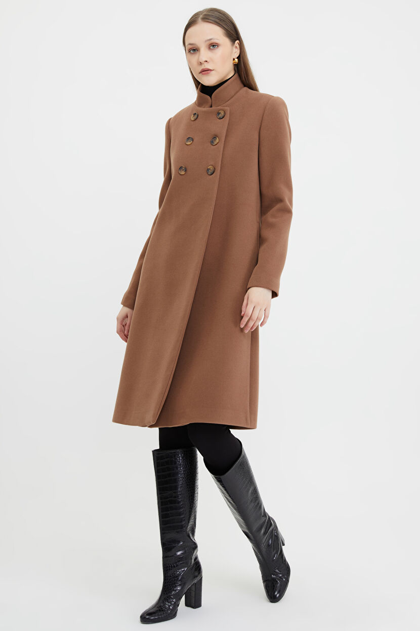 Kahverengi Hakim Yaka Düğmeli Uzun Kol Kaban