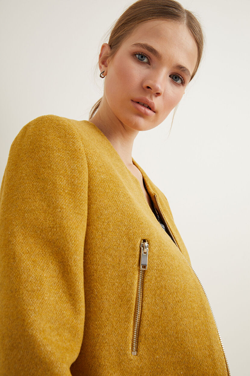 Lime Bisiklet Yaka Fermuarlı Kaban