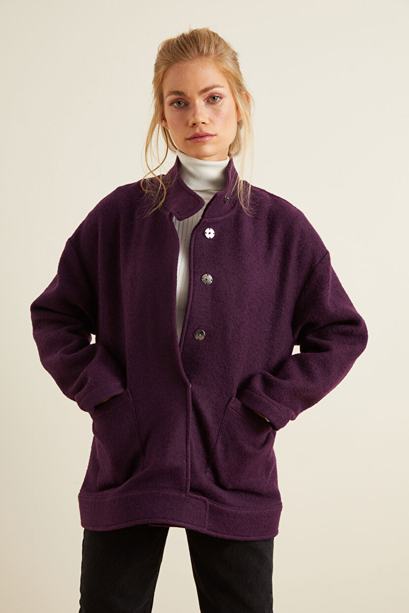 Mor Çıtçıtlı Kısa Cepli Kaban