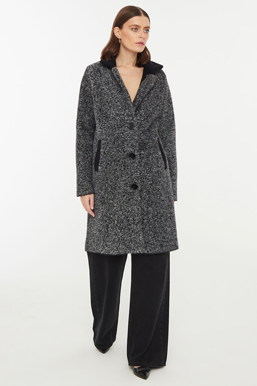 Siyah Erkek Yaka Kruvaze Triko Kaban