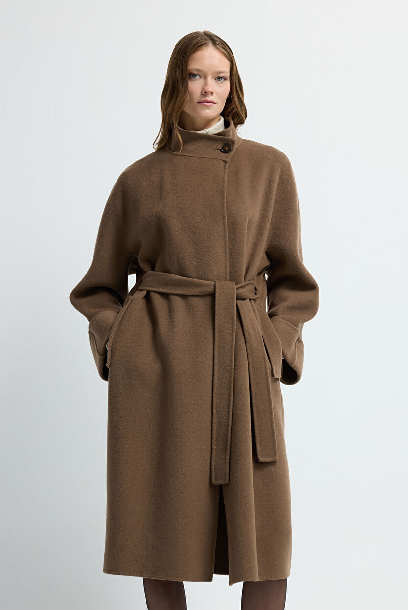 Yeşil Kuşaklı Yün Karışımlı Kaban