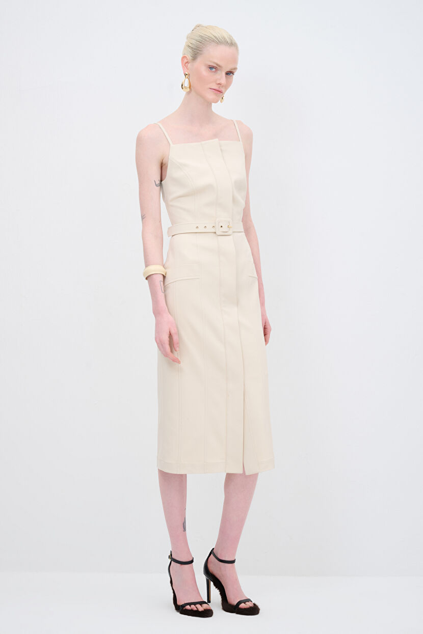 Vanilya İp Askılı Kemerli Elbise