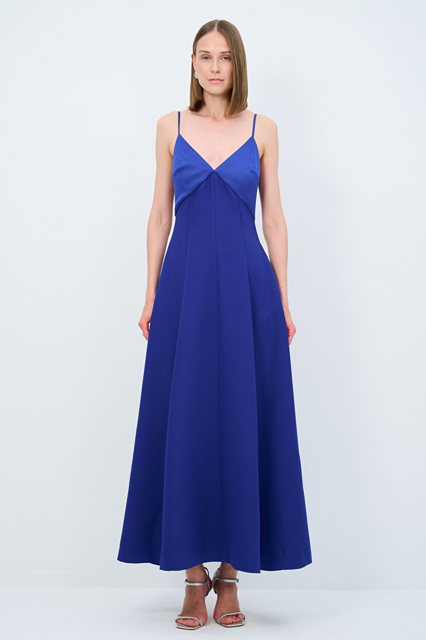 Lacivert Night Zoom İp Askılı Uzun Elbise