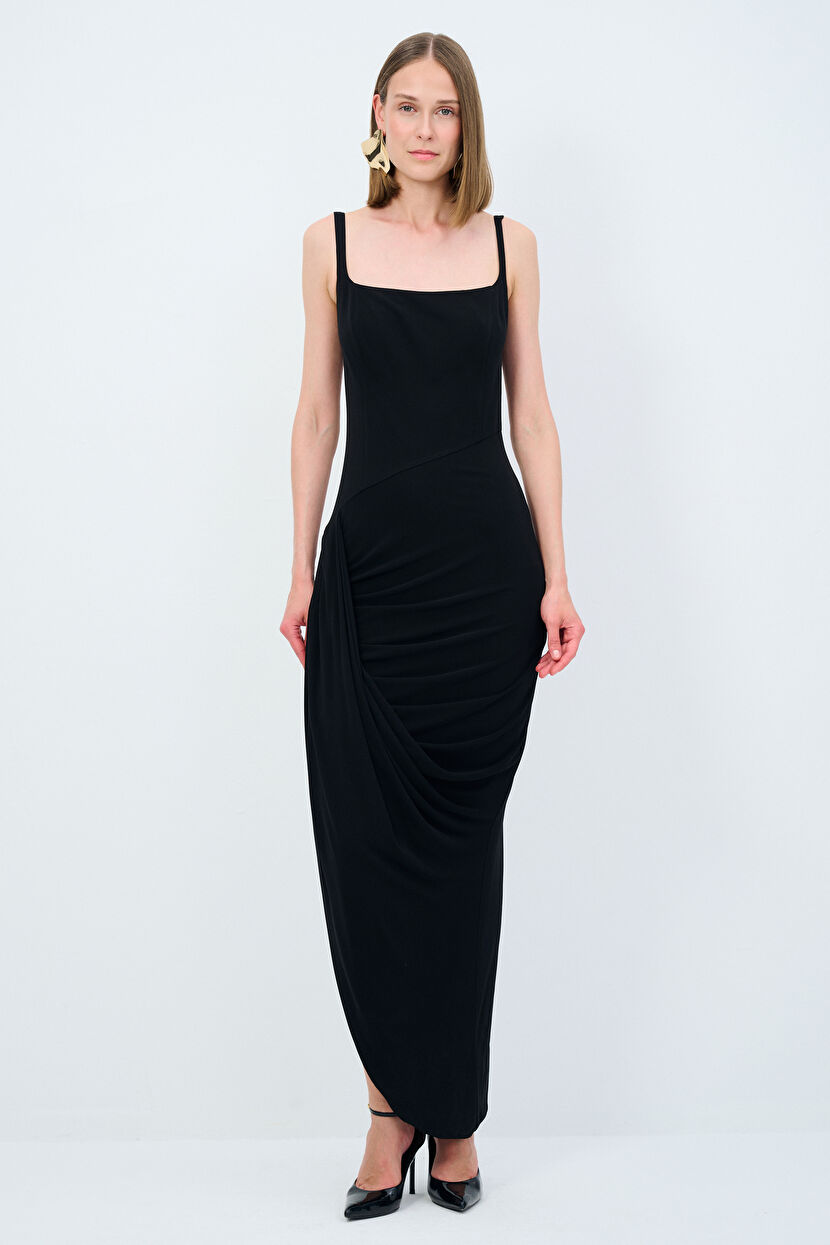 Siyah Mert Aslan Kare Yaka Uzun Elbise
