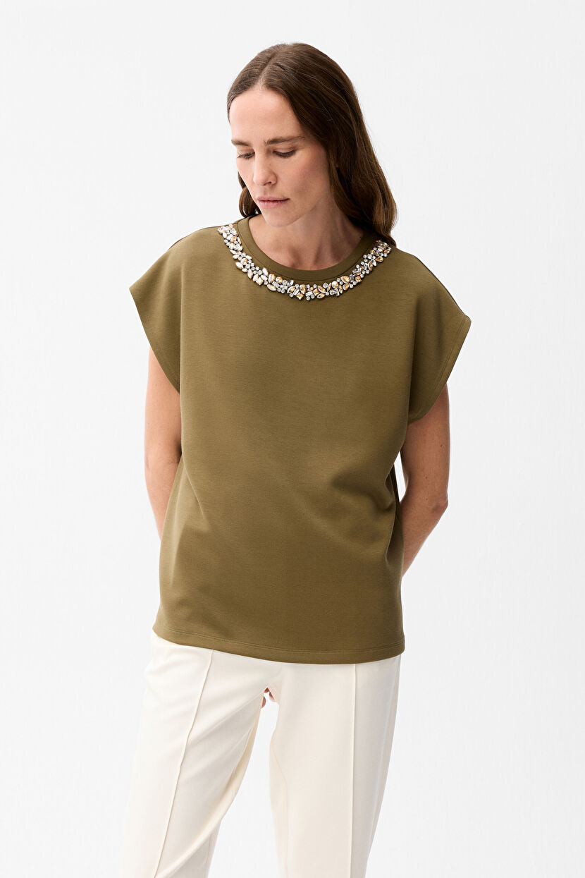 Haki Yakası taşlı bluz