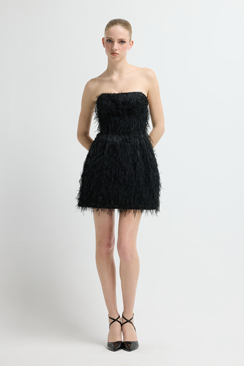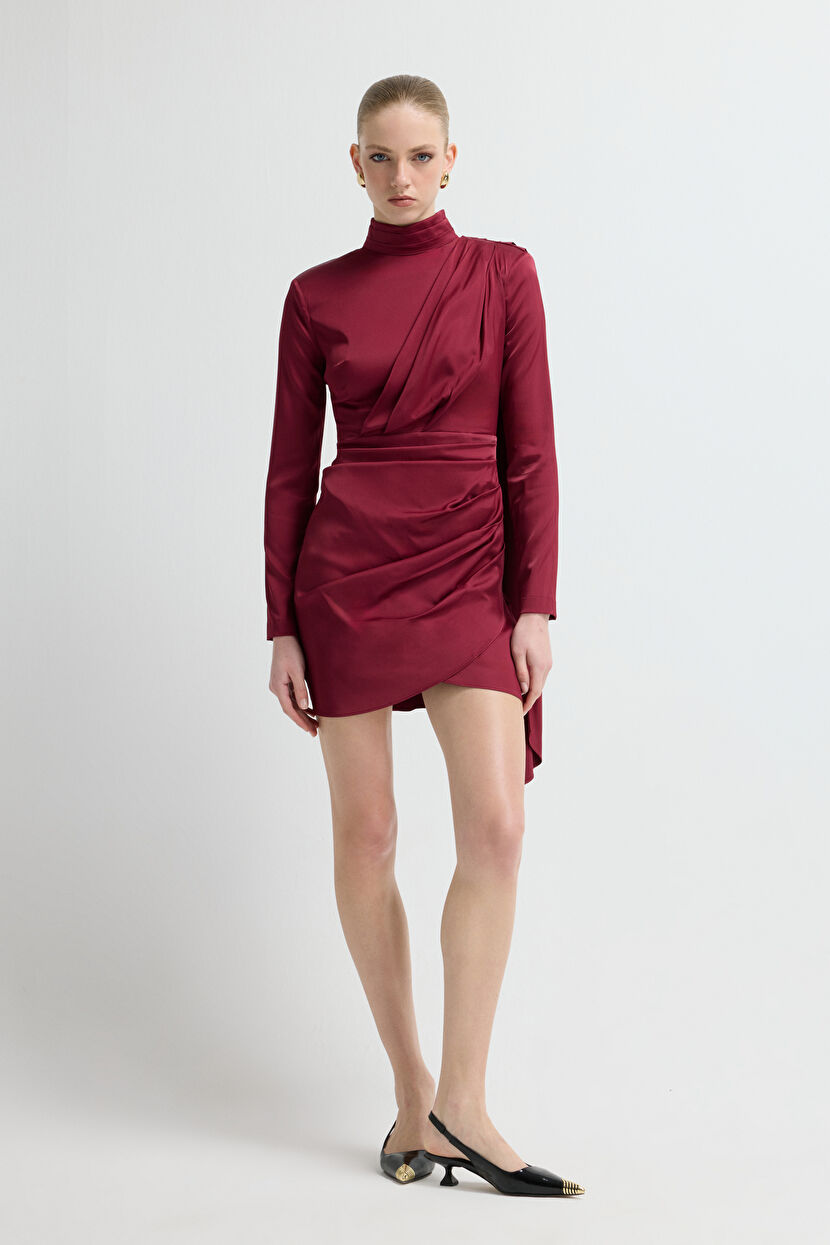 Pembe Mert Aslan Omuzları Açık Pileli Elbise