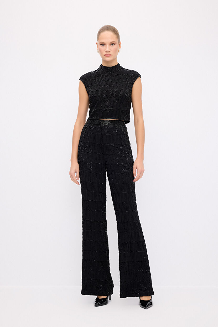 Siyah Mert Aslan Boncuk İşlemeli Pantolon