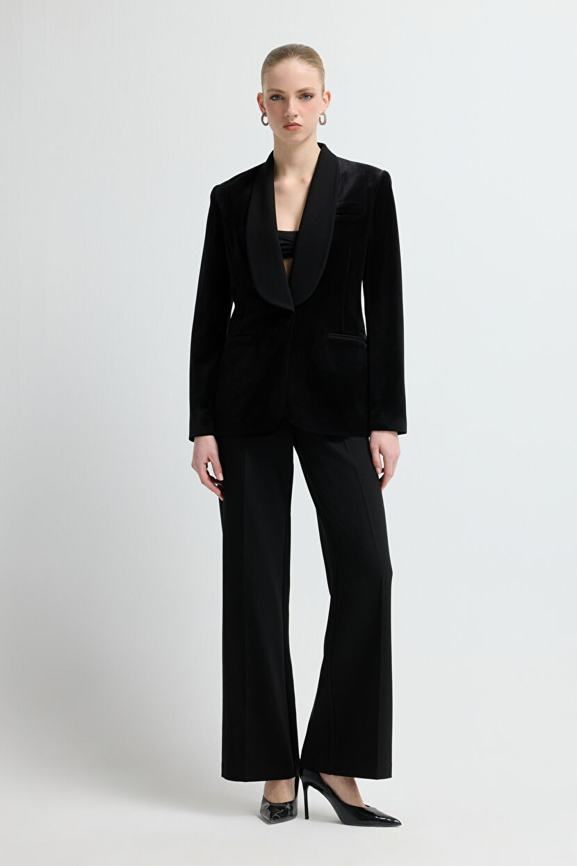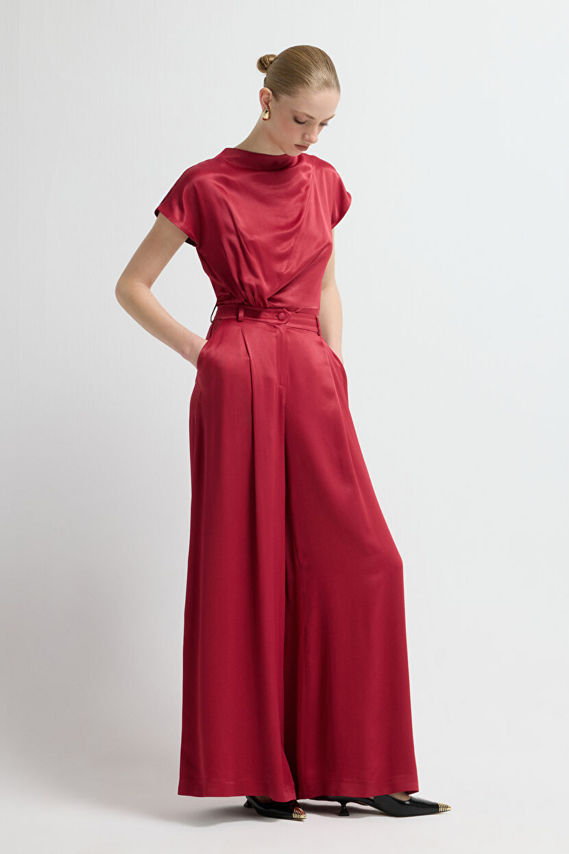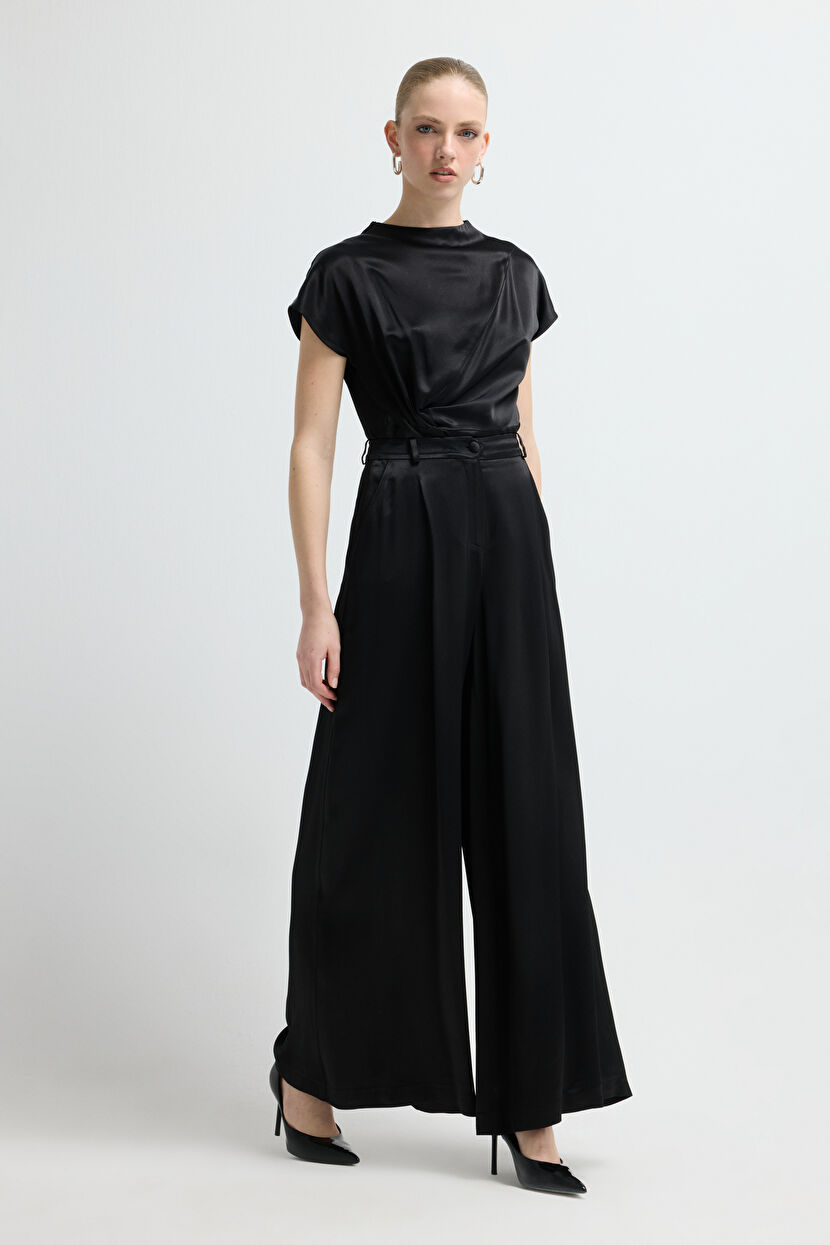 Lacivert Taşlı Bol Paça Denim Pantolon