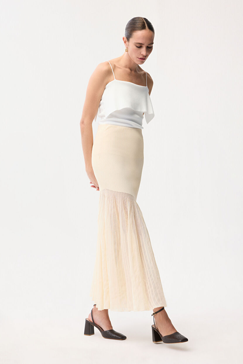 Vanilya Tül Detaylı Triko Etek