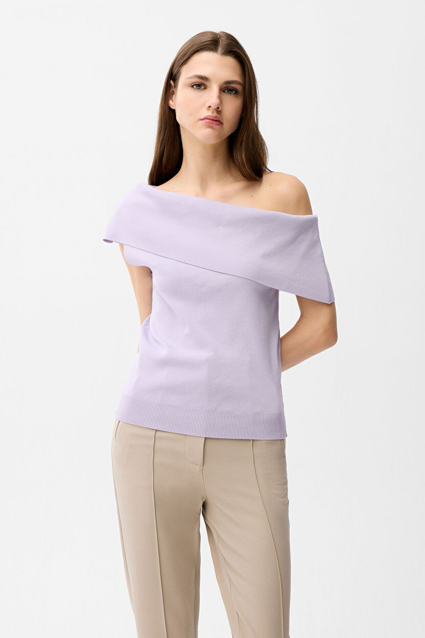 Lila Düşük Omuz Trıko Bluz