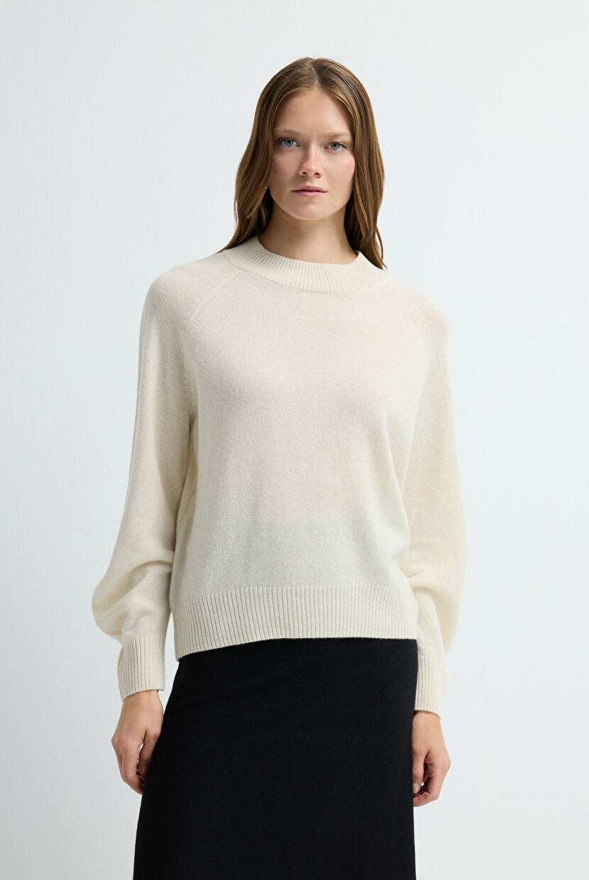 Ekru Sim Detaylı Kaşmir Triko Kazak