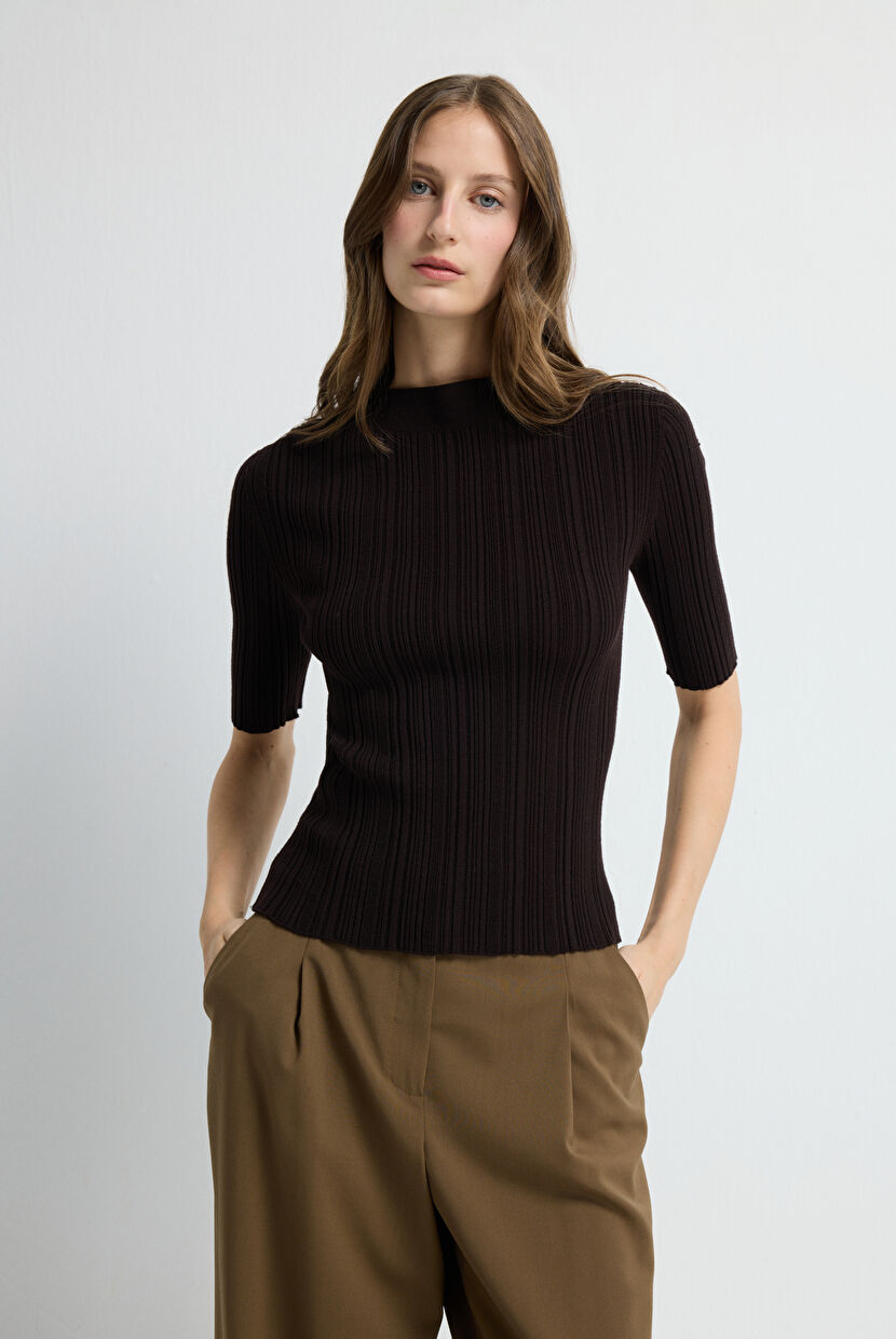 Kahverengi Fitilli Triko Bluz