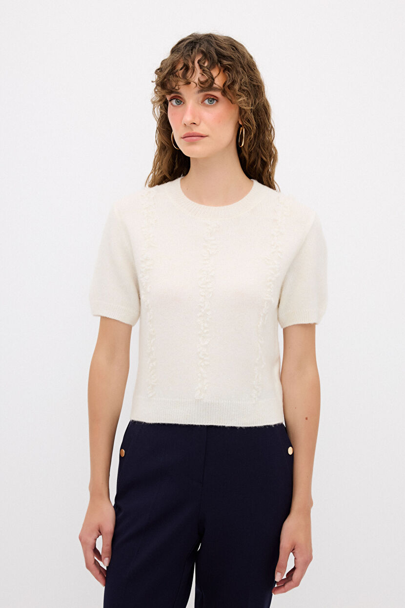 Kemik Püskül Detaylı Kısa Kol Triko Kazak