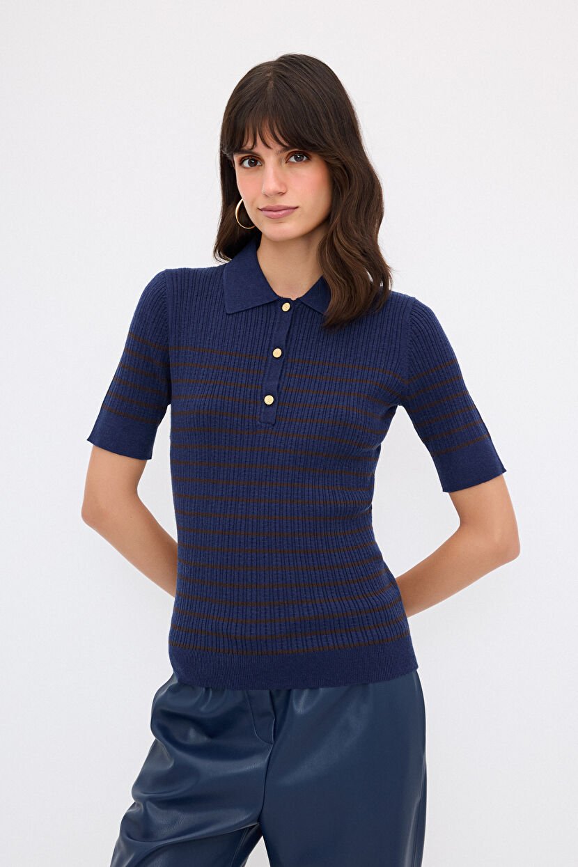 Lacivert Polo Yaka Kısa Kol Kazak