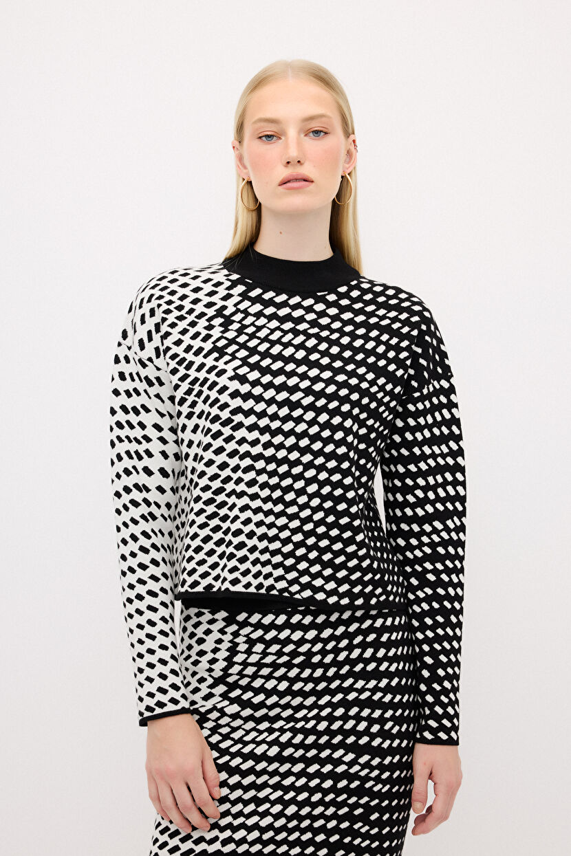 Siyah Geometrik Desenli Triko Kazak