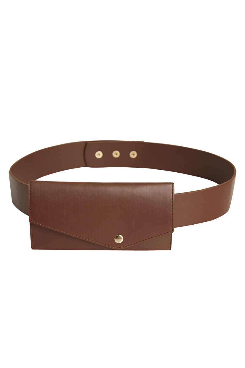 Kahverengi Makaralı Çantalı Kemer