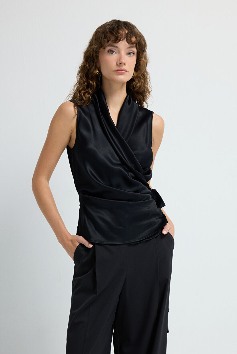 Siyah Bağlama Detaylı Anvelop Bluz