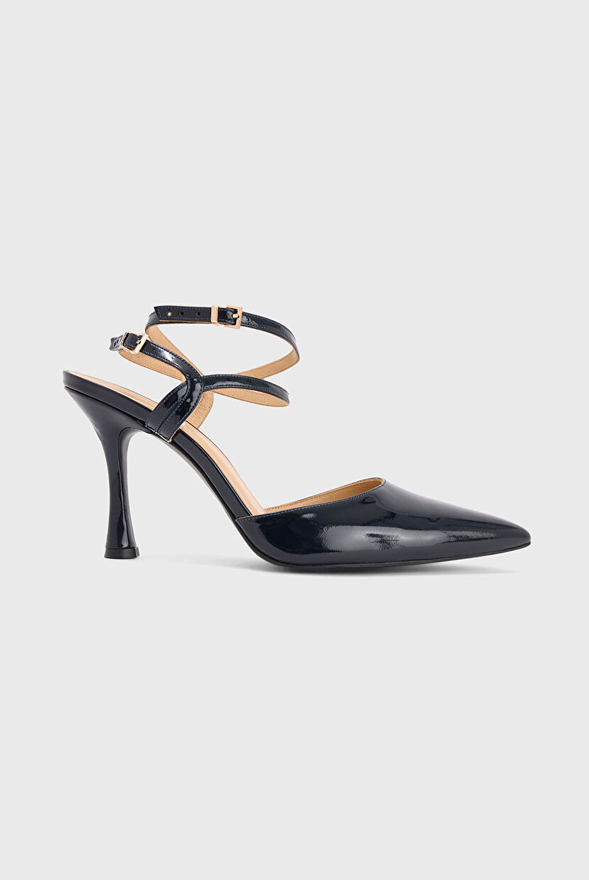 Lacivert Deri Rugan Bağlamalı Topuklu Ayakkabı