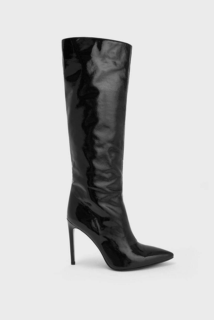 Siyah Deri Rugan Uzun Çizme