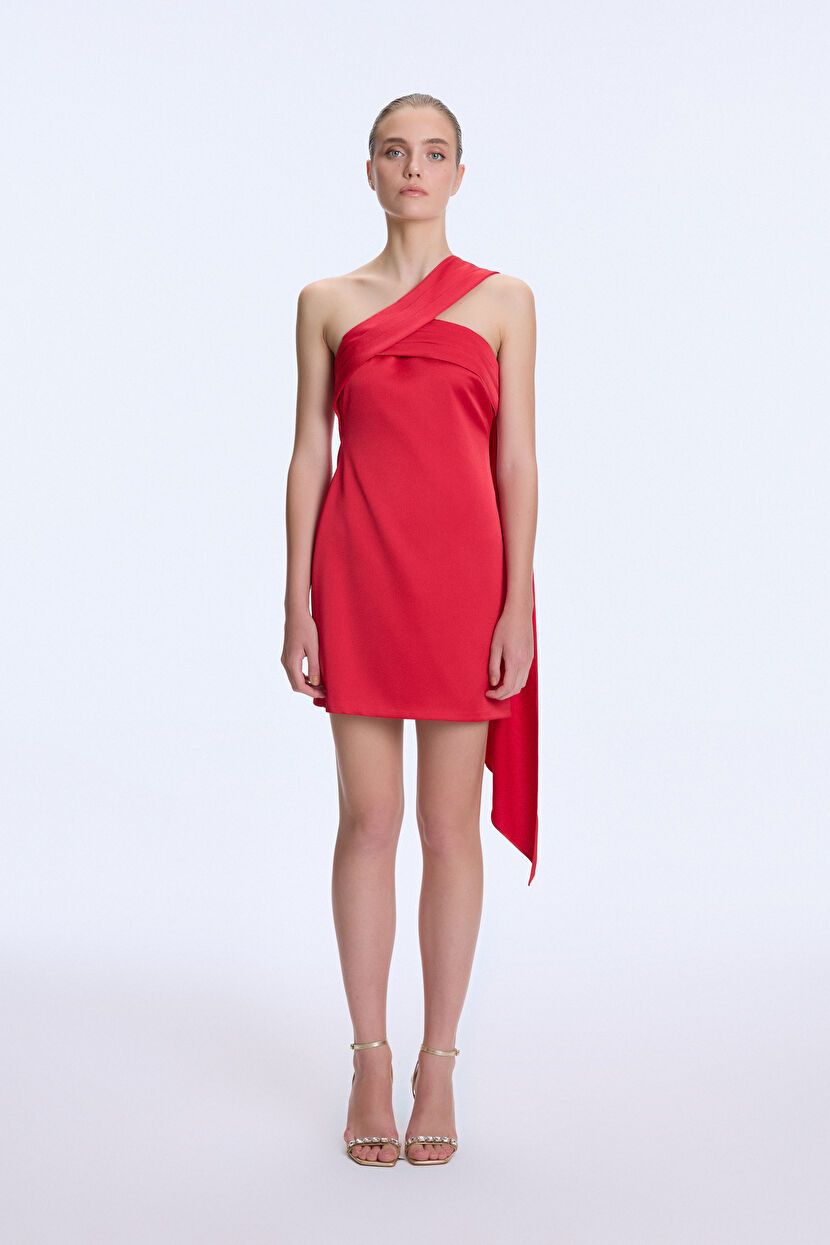 Kırmızı Mert Aslan Asimetrik Mini Elbise