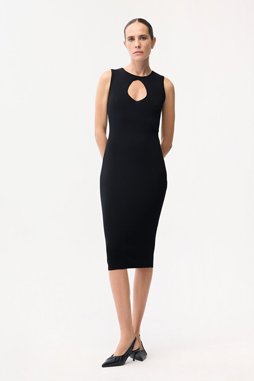 Siyah Kolsuz Uzun Trıko Elbise