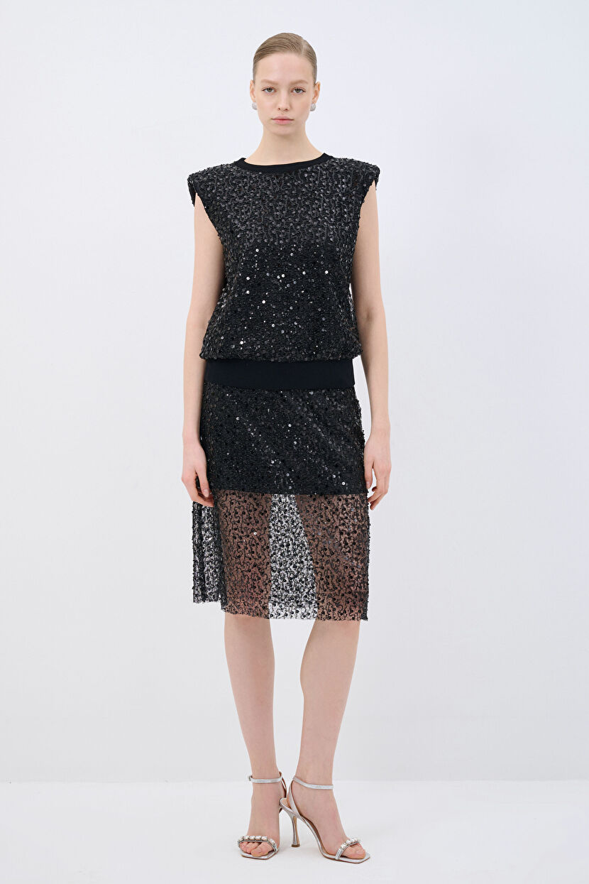 Siyah Payet İşlemeli Etek