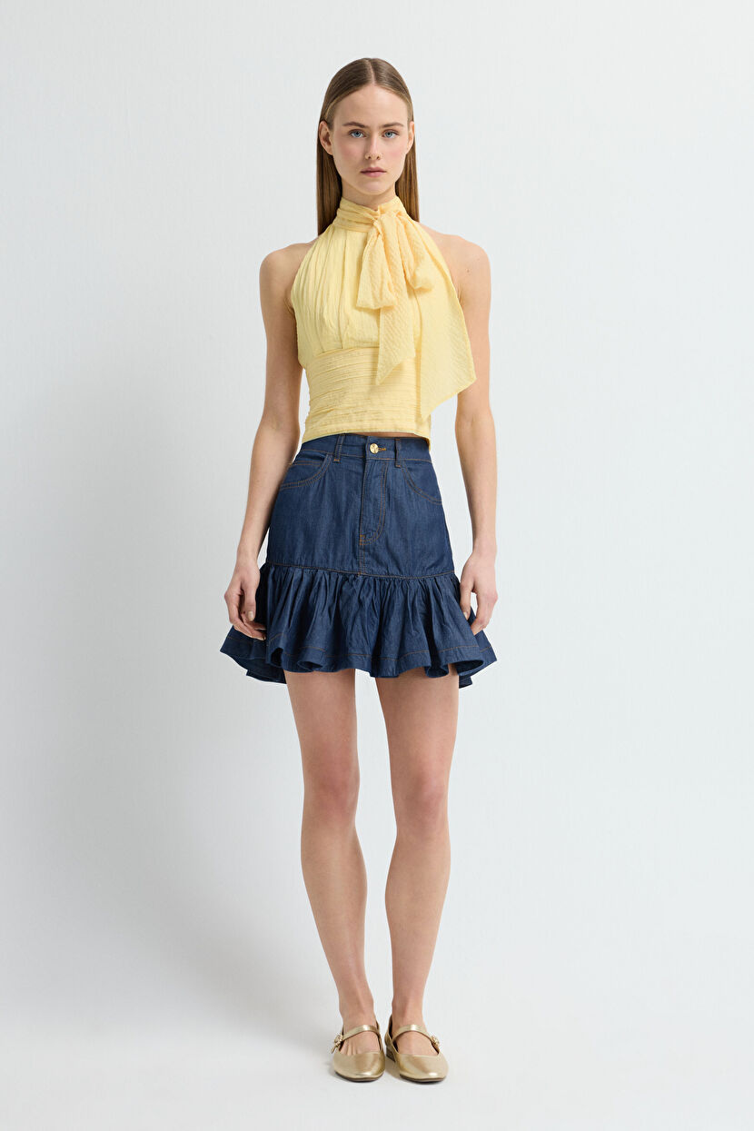 Mavi Etek Ucu Volanlı Etek