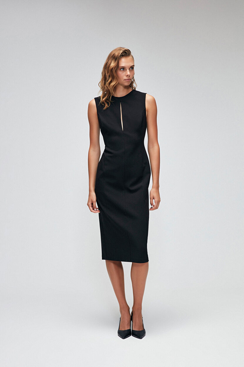 Siyah Moda Tutkusu Yırtmaçlı Elbise