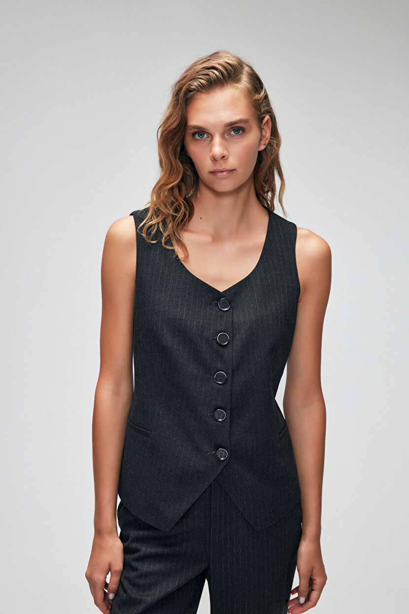 Gri Moda Tutkusu Yuvarlak Yaka Yelek