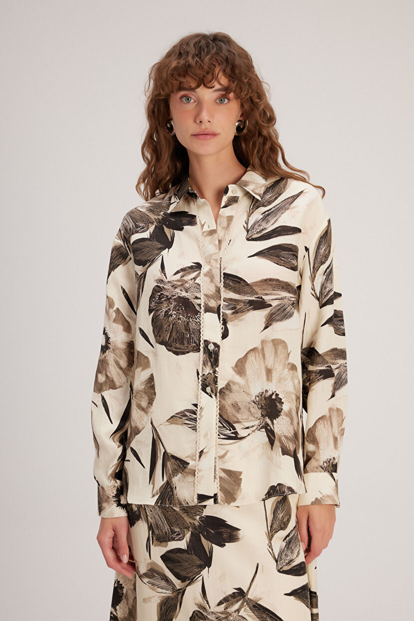 Bej Desenli Cepli Gömlek