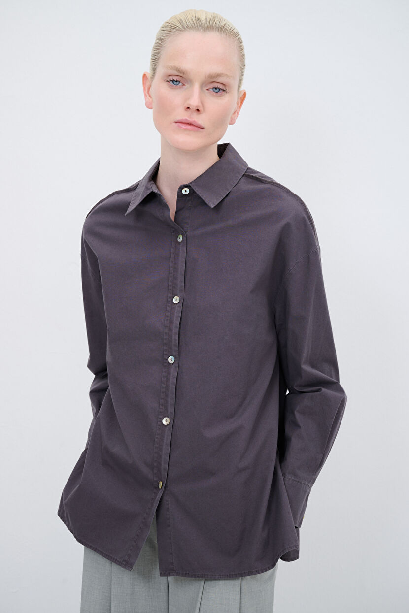 Gri Poplın Gömlek
