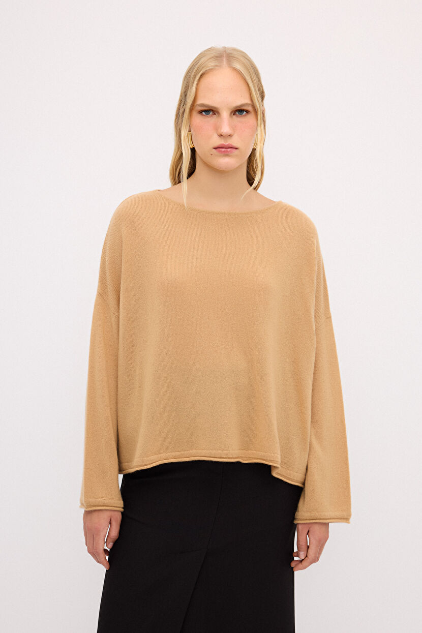 Camel Kaşmir Karışımlı Oversize Triko Kazak