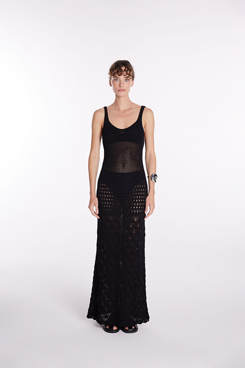 Siyah Night Zoom Halter Yaka Uzun Elbise