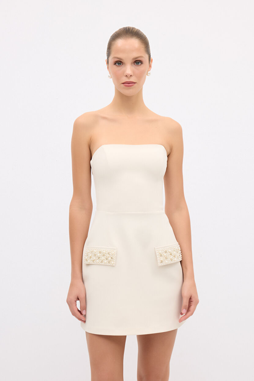 Vanilya Night Zoom Cep Kapaklı Straplez Elbise