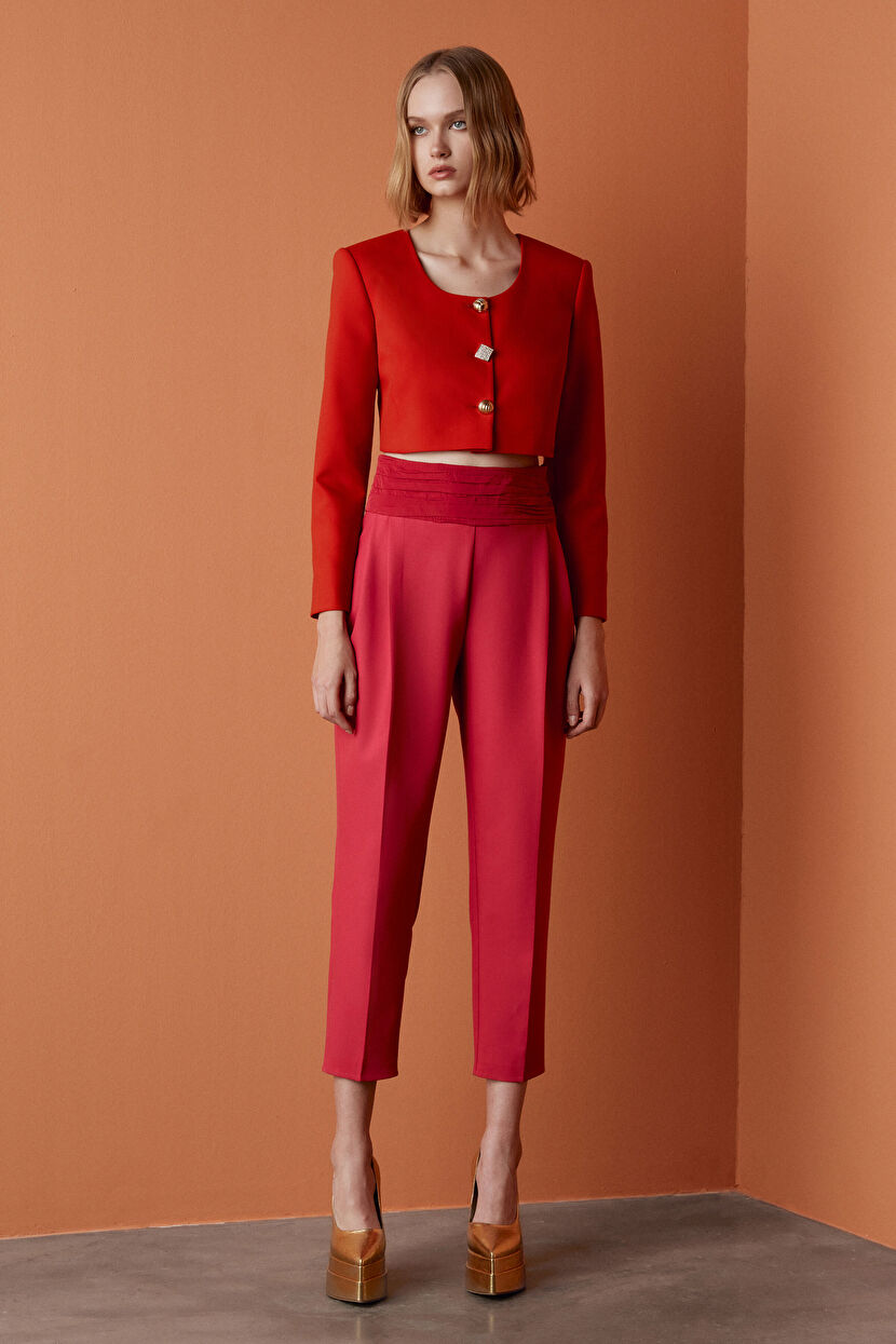 Fuşya Mert Aslan Beli Piliseli Havuç Paça Pantolon
