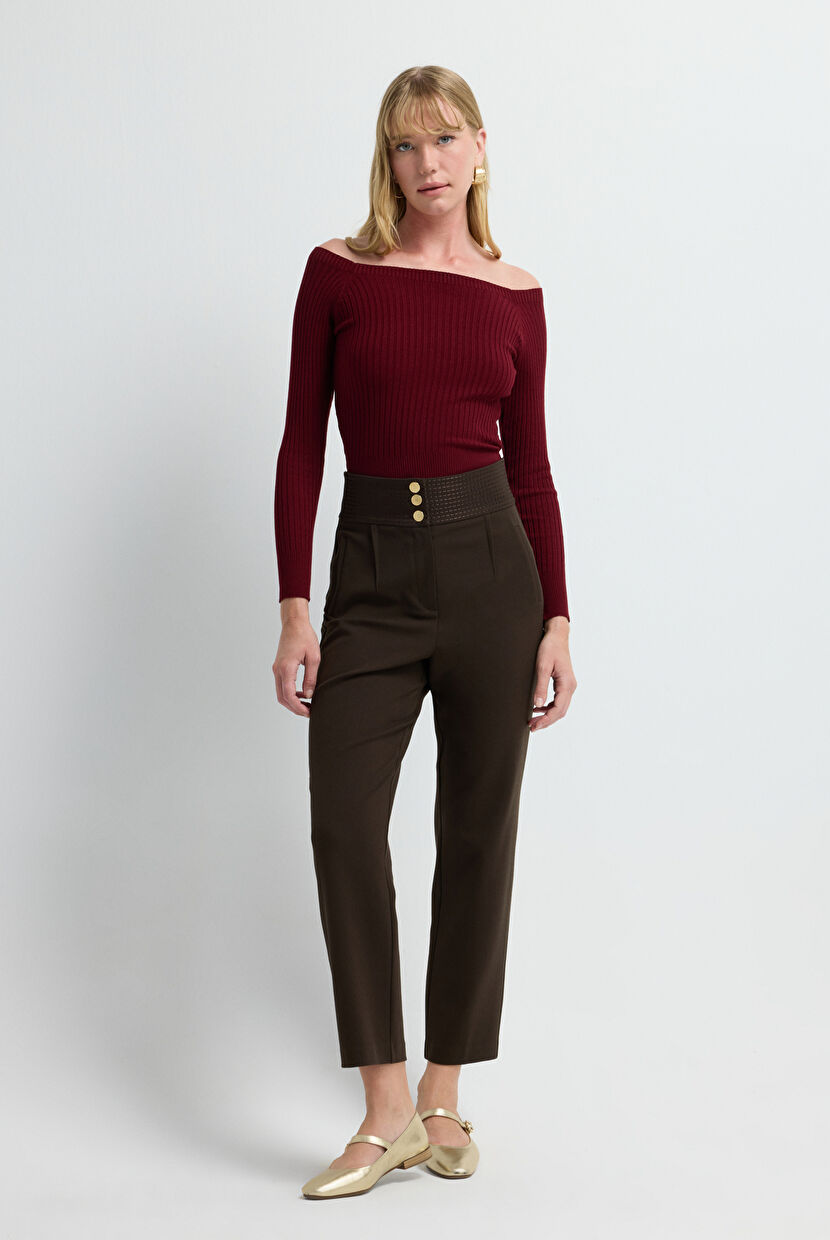 Kahverengi Dikiş Detaylı Pantolon