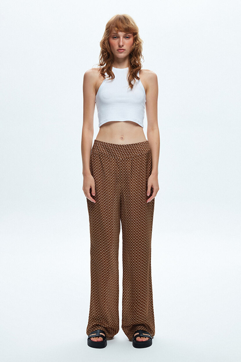 Kahverengi Moda Tutkusu Korsajlı Desenli Pantolon