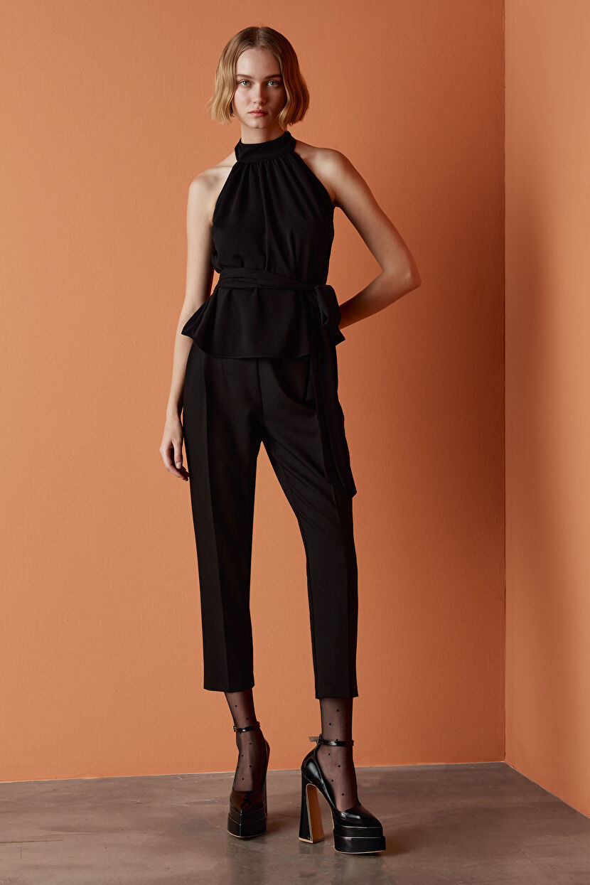 Siyah Mert Aslan Beli Piliseli Havuç Paça Pantolon