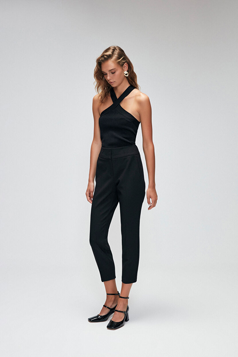Siyah Moda Tutkusu Yüksek Bel Pantolon